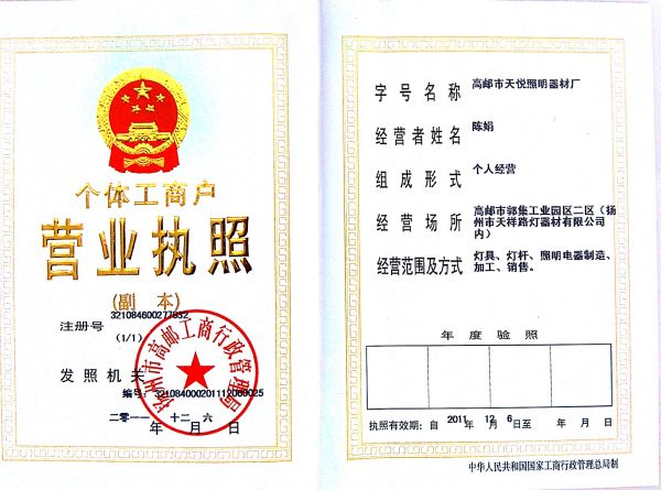 高邮市天悦照明器材厂网站由中国家具招标网制做维护。内容真实性及解释权归高邮市天悦照明器材厂负责。