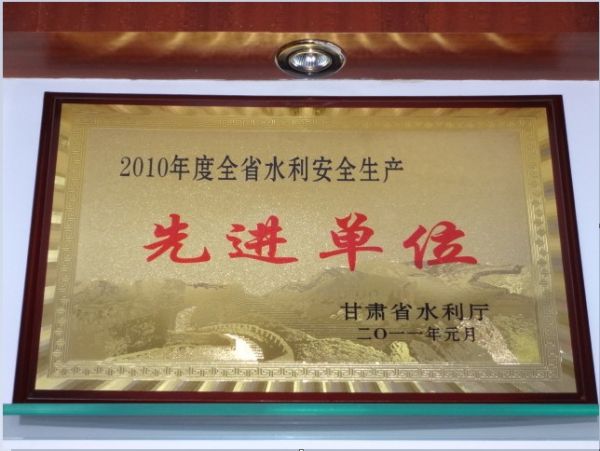 2013年3月2日被甘肃省水利厅评委“全省水利安全生产先进单位